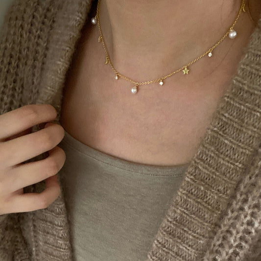 5.5-6mm Starry Sky Freshwater Necklace - Gold FNSG0556