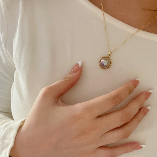 18K Gold Blue Iridescent Mabe Saltwater Pearl Necklace MSP18K1617