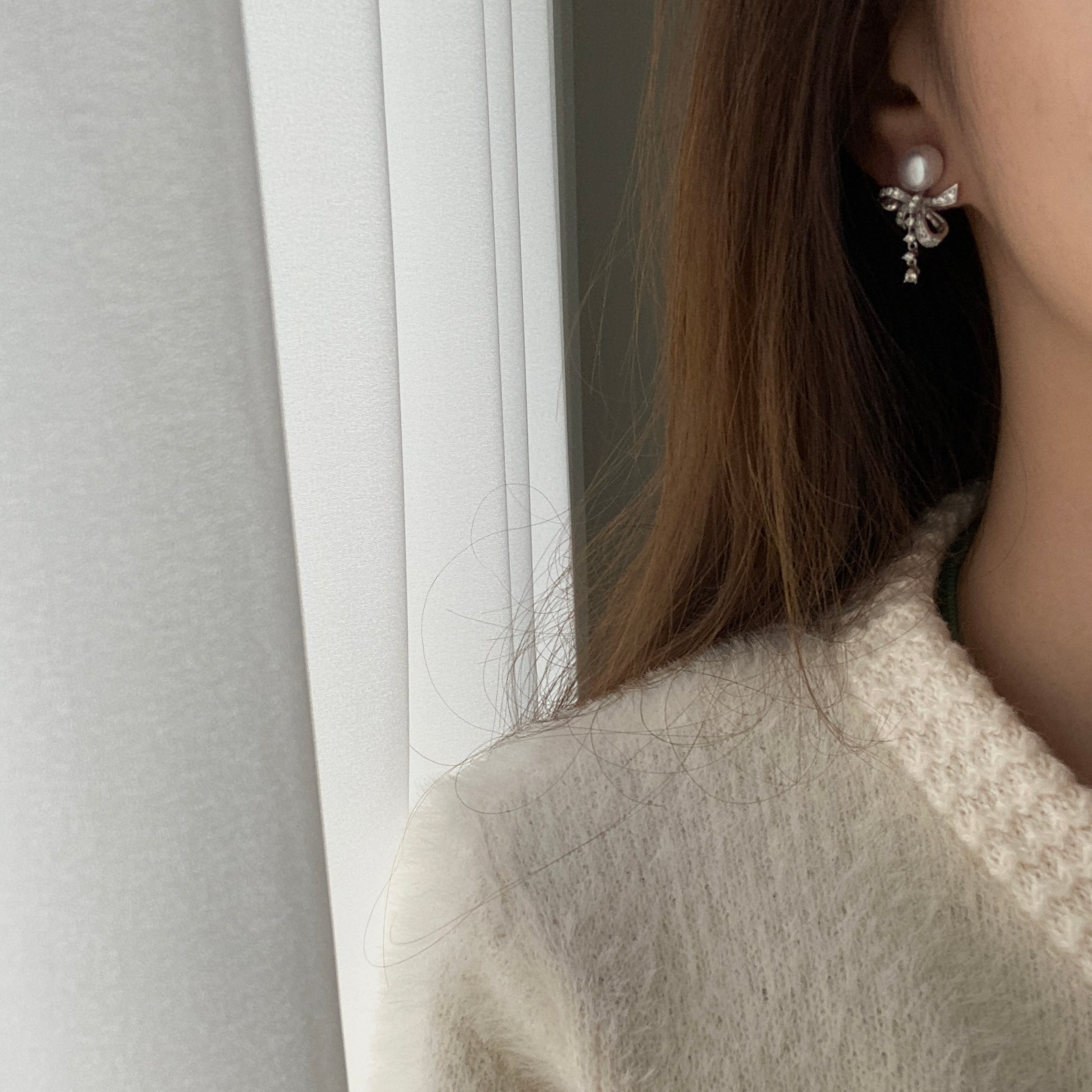 (Pre-order) 8mm Tassel Bow Freshwater Pearl Earrings FES0008